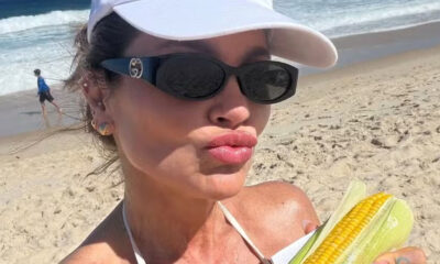A dançarina e influenciadora Sheila Mello, de 47 anos, aproveitou o feriado prolongado em grande estilo ao lado de amigos, em um refúgio cercado pela natureza. Nas redes sociais, ela compartilhou momentos descontraídos da viagem, aparecendo de biquíni fio-dental preto, óculos de sol e chapéu, enquanto relaxava com um drink na mão.
