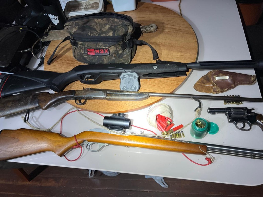 Durante o cumprimento dos mandados, um dos alvos foi preso em flagrante pela posse ilegal de arma de fogo, além de carne de animais silvestres e petrechos utilizados para a prática de briga de galos. Foram apreendidos quatro armas de fogo, munições e volumes de carne de animais silvestres congelados. Em um dos imóveis, também foi encontrada uma estrutura destinada à prática de rinha de galos.