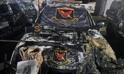 Seguindo os pontos indicados pela dupla, a Rotam localizou duas espingardas e um fuzil, além de mais munições de calibre 5.56. Ainda dentro da casa, foram localizados materiais de guerrilhas como fardas, coletes e coturnos camuflados e um material de treinamento das Forças Armadas Revolucionárias da Colômbia (Farc).