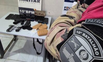 Policiais militares da Patrulha Rural do 10º Batalhão apreenderam armas de fogo, drogas e desarticularam uma quadrilha especializada em estelionato durante uma abordagem na região do...